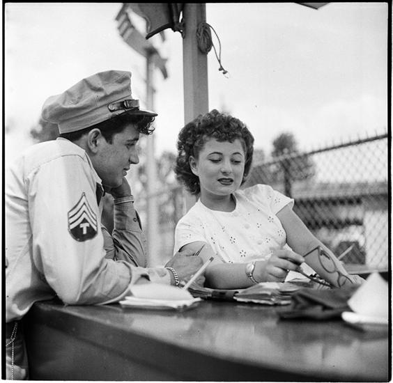 Palisades Amusement Park [Man and woman talking in an amusement park.]