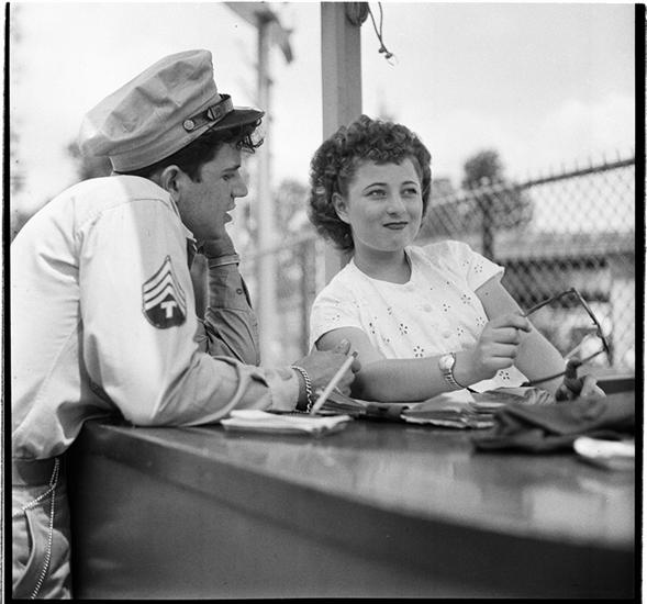Palisades Amusement Park [Man and woman talking in an amusement park.]