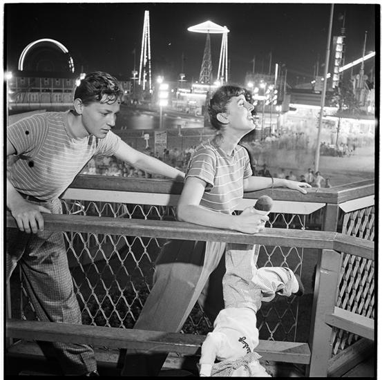 Palisades Amusement Park [Man and woman in the park, woman holds a doll upside down.]