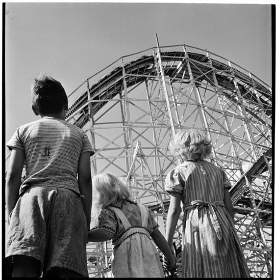 Palisades Amusement Park [Children looking at a roller coaster.]
