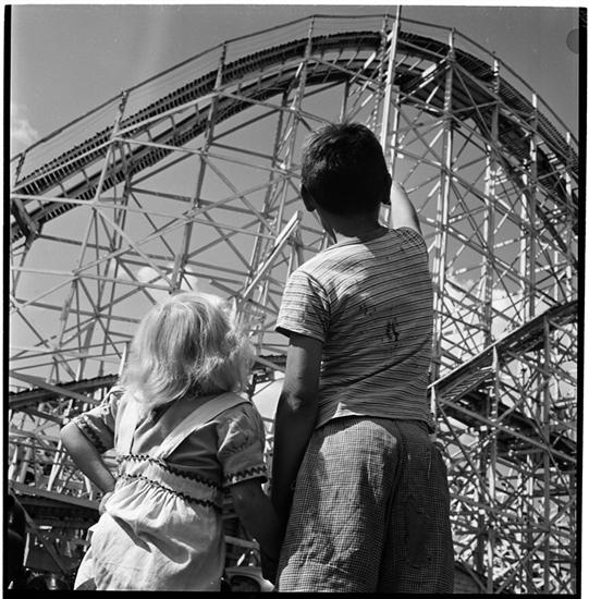 Palisades Amusement Park [Children looking at a roller coaster.]