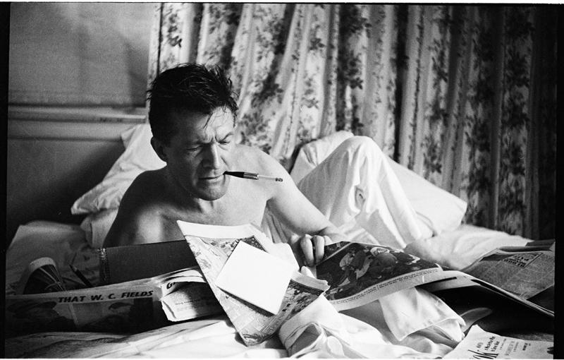 Peter Arno [Arno, in bed, surrounded by newspapers.]