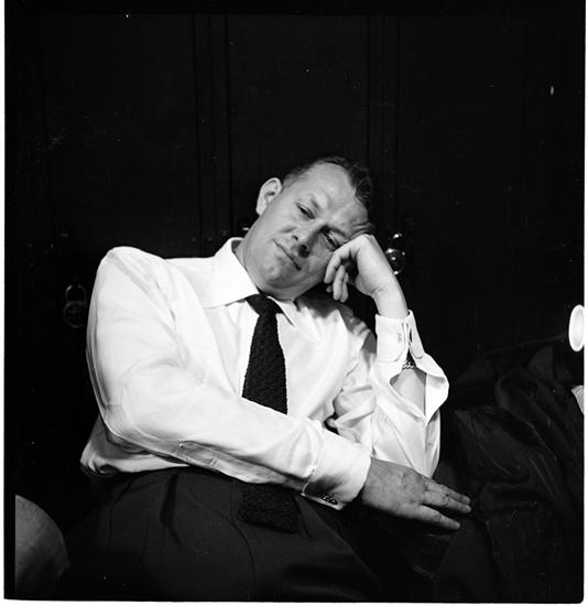 Vaughn Monroe [Monroe sleeping in a locker room.]