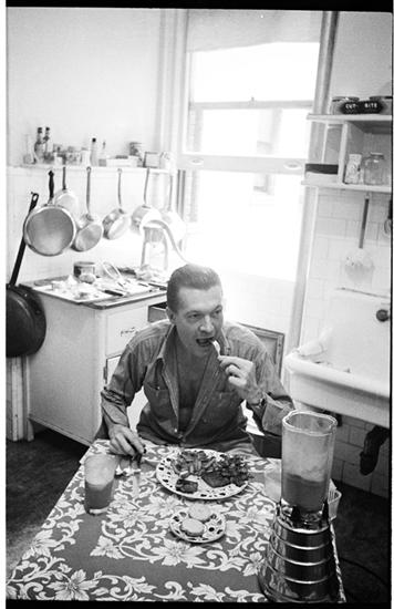 Peter Arno [Arno eating in his kitchen.]