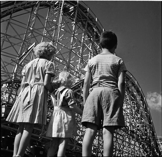 Palisades Amusement Park [Children looking at a roller coaster.]