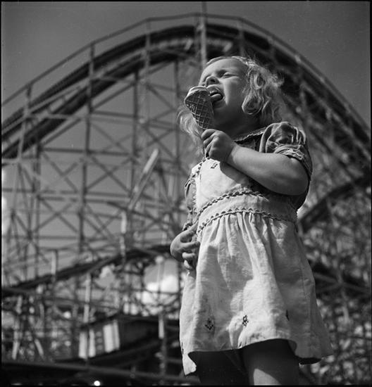 Palisades Amusement Park [Girl eating an ice cream cone.]