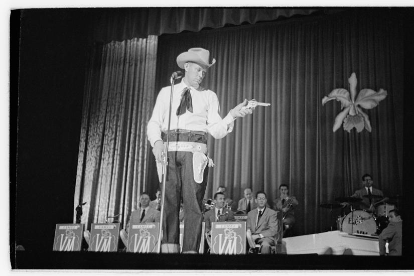 Vaughn Monroe [Monroe dressed in a cowboy costume performing on stage.]