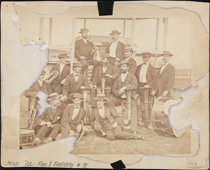 [A. Group portrait of a band ; B. Police squad Mulberry Street.]