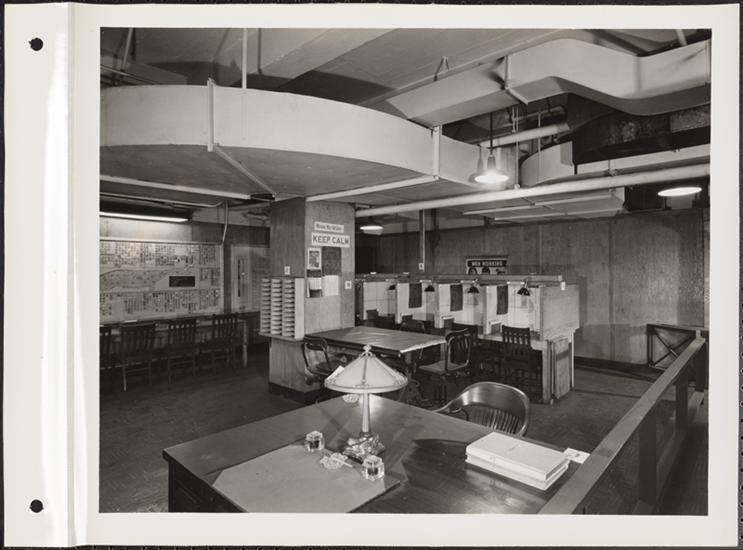 [Eleven views of empty civil defense offices.]