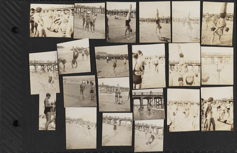 [Scenes of New York Harbor and acrobatics at Coney Island beach.]