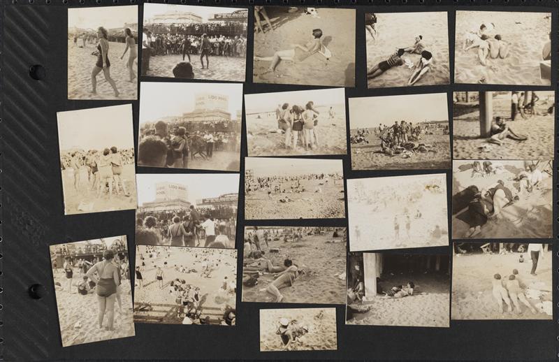 [Scenes of people performing acrobatics at Coney Island beach.]
