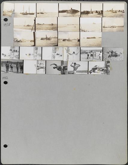 [Views of men's physiques and physical fitness on Coney Island beach.]