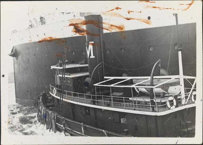 [Close-up view of Alice M. Moran and E. F. Moran Jr. tugboats.]