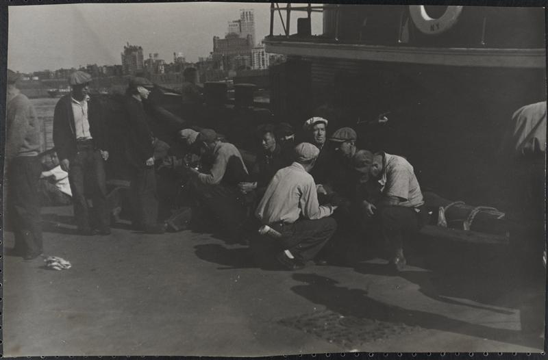 [Men hanging out on New Jersey waterfront.]