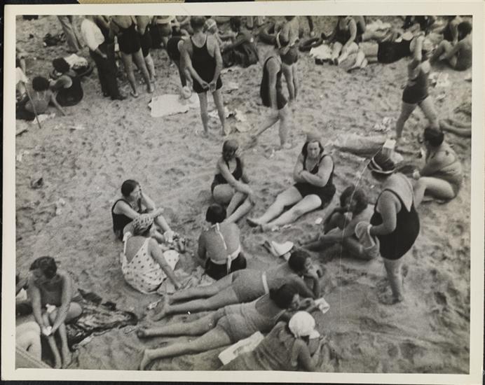 [People relaxing on Coney Island beach.]