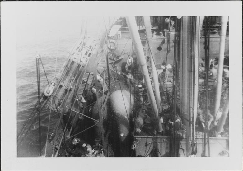 [Crew members on deck of ship.]