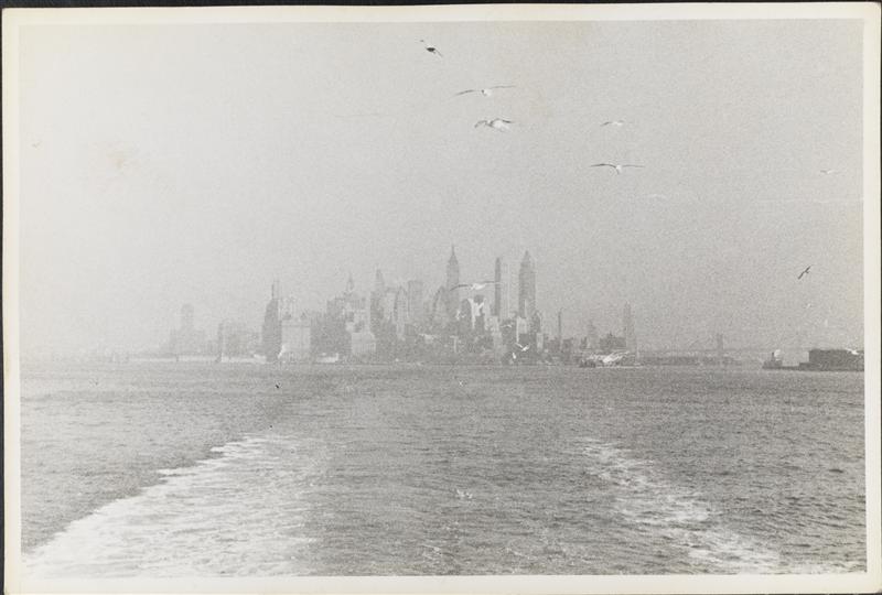 [New York Harbor and Manhattan and Brooklyn skylines.]