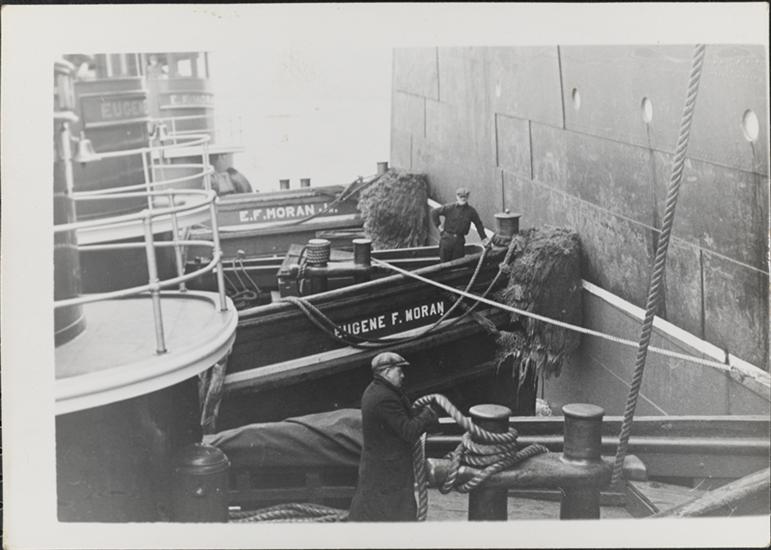 [Tugboats with ocean liner.]