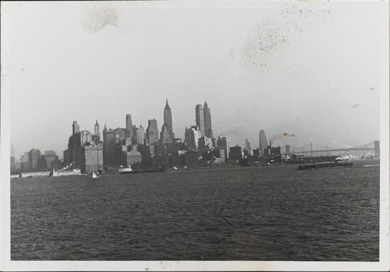 [New York Harbor and Manhattan and Brooklyn skylines.]