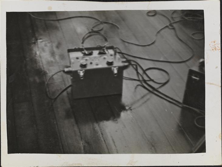 [Sound equipment on deck of ship.]
