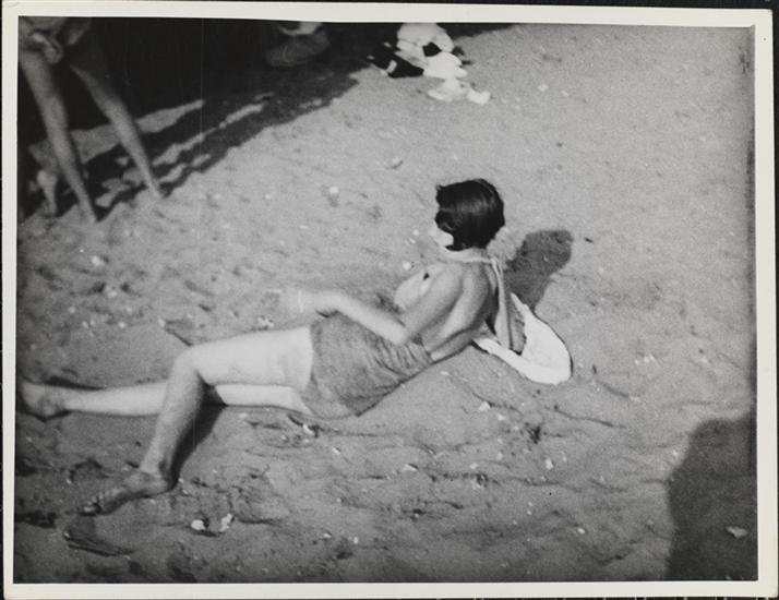 [Woman relaxing on Coney Island beach.]