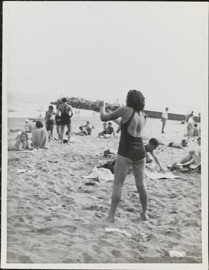 [Woman on Coney Island beach.]