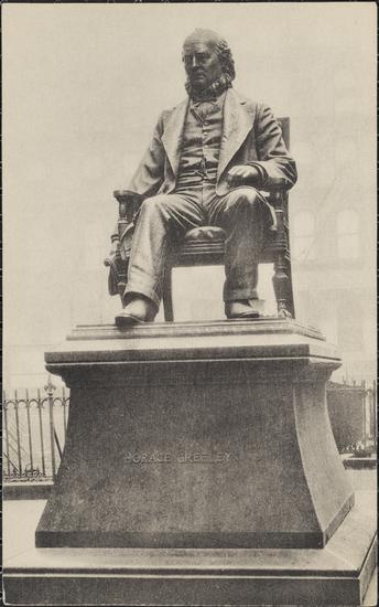 [From base of Greeley's Statue looking west across City Hall Park.]