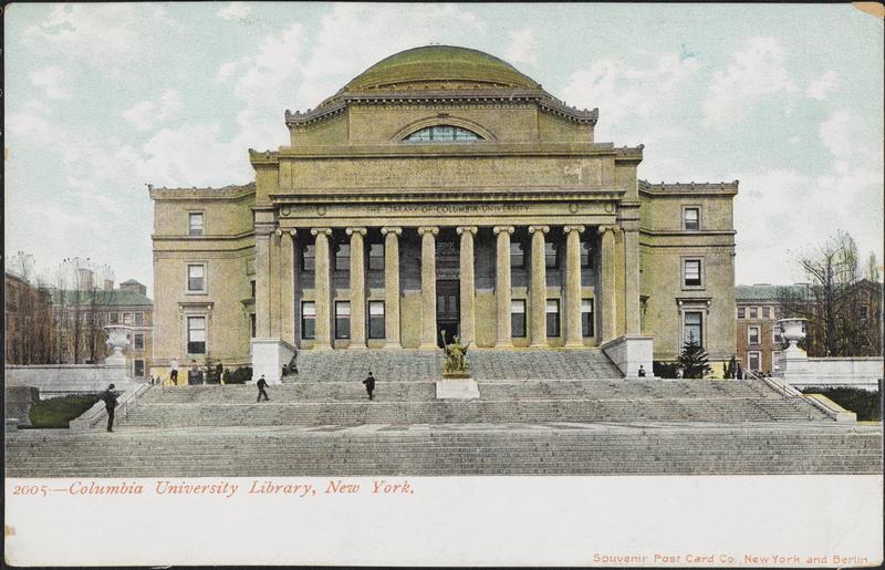 Library, Kent Hall, St. Paul's Chapel and Hamilton Hall from South Field, Columbia University, New York.