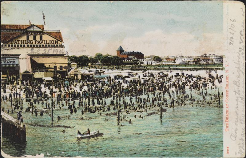 Crowd of Bathers on Beach, front of Steeplechase, Coney Island, N.Y.