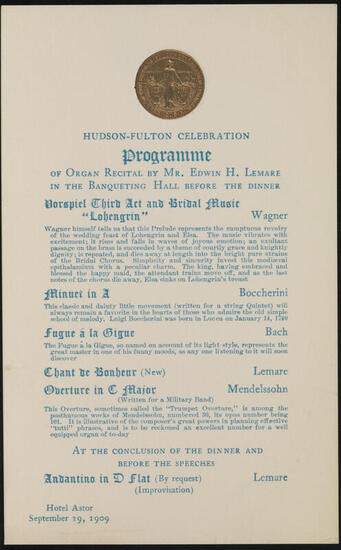 [Banquet in commemoration of the Hudson-Fulton Celebration.]