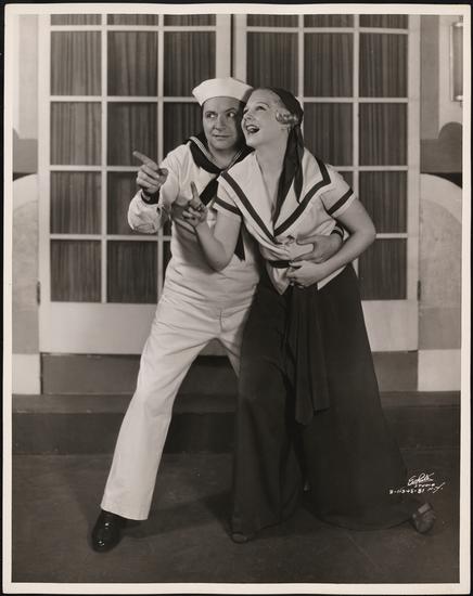 [Ethel Merman as Reno Sweeney and William Gaxton as Billy Crocker in "Anything Goes".]