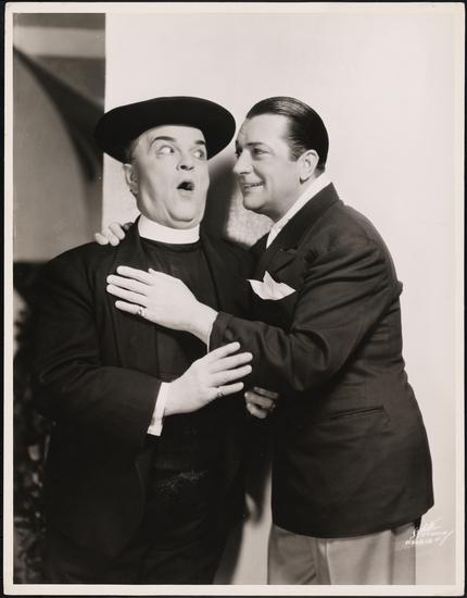 [William Gaxton as Jim Taylor and Victor Moore as Senator Oliver P. Loganberry in "Louisiana Purchase".]