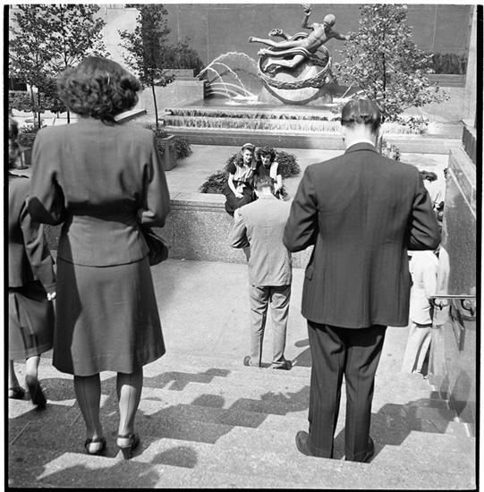 Photography - Everyone is Taking Pictures [Woman posing for a photograph in front of Prometheus Fountain.]