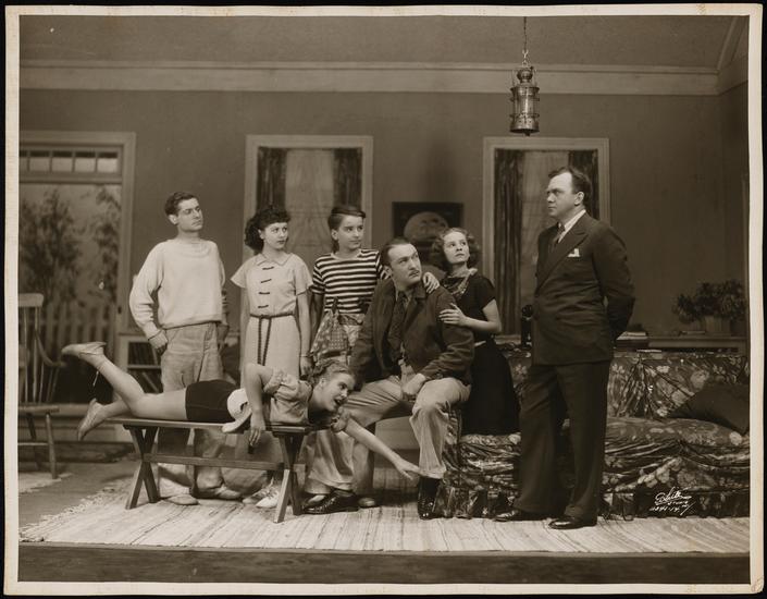 [Thomas Mitchell, unidentified actress, and Walter Abel.]