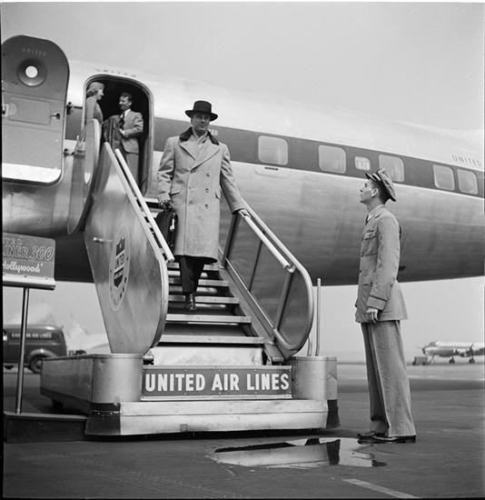 Fashion - Men [Fashion shoot, showing a man boarding a plane.]