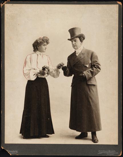 [Rachel Booth as Alice (Lady Coodle's maid) and James T. Powers as Flipper (a Jockey) in "A Runaway Girl".]