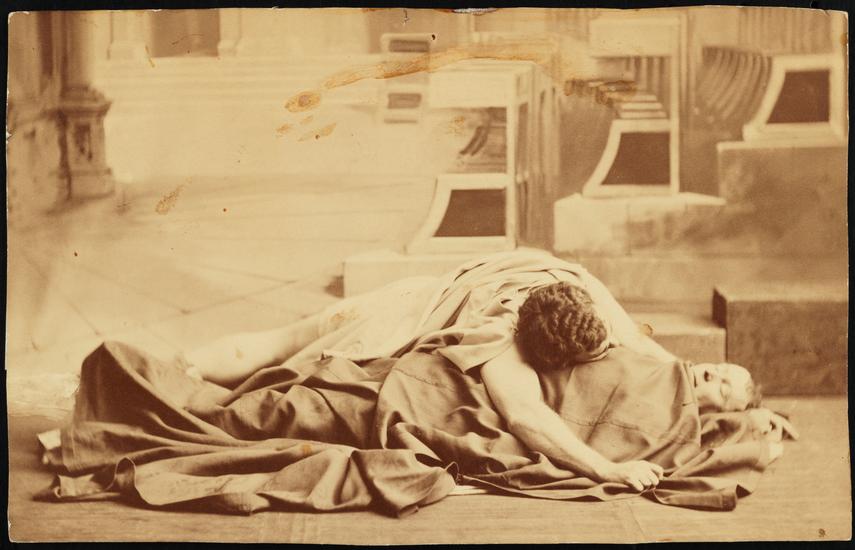 [John Wilkes Booth as Marc Antony, Edwin Booth as Marcus Brutus, and Junius Brutus Booth, Jr. as Cassius in "Julius Caesar".]