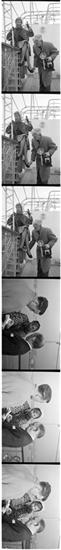 Betsy Von Furstenberg [Sitting on a railing on a ship.]