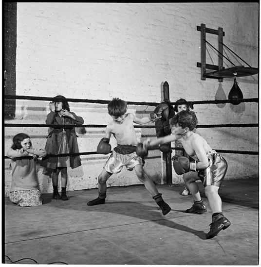 Boxing [at the] Police Athletic League [Two boys boxing.]
