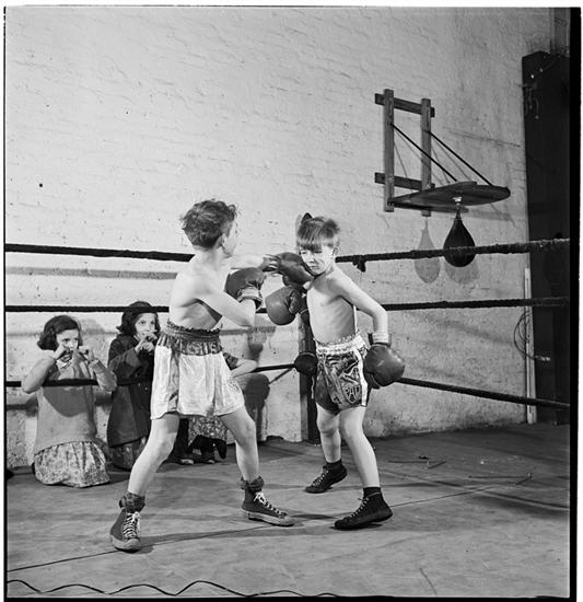 Boxing [at the] Police Athletic League [Two boys boxing.]