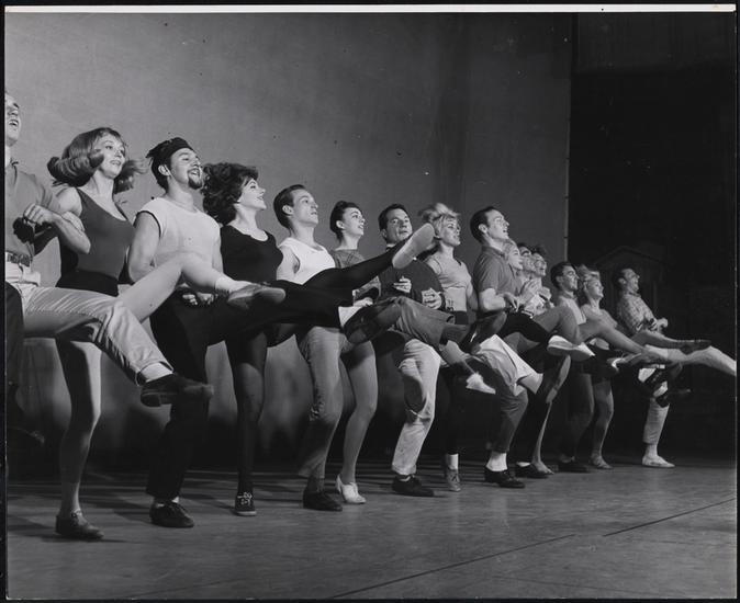 [Dancers rehearsing for the national tour of "Carnival!".]