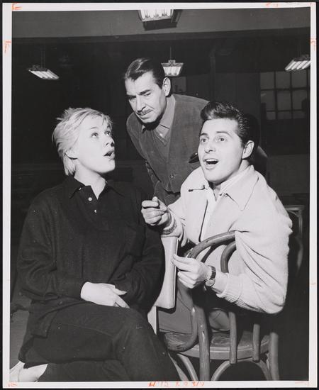 [Sidney Blackmer, Tom Stern and Shirley Knight in rehearsal for "We Have Always Lived in the Castle".]
