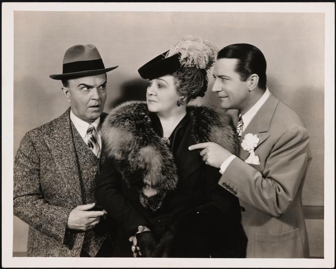 William Gaxton as Buckley Joyce Thomas, Victor Moore as Alonzo P. Goodhue and Sophie Tucker as Mrs. Goodhue on tour for "Leave It to Me!".]