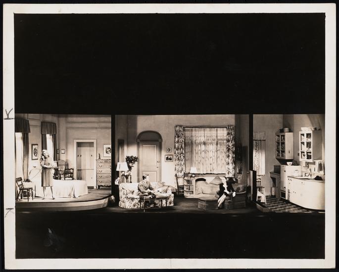 [K. T. Stevens as Sally Middleton and unidentified actor in the role of Bill Page for the touring production of "The Voice of the Turtle".]