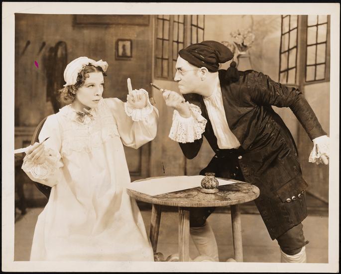 [Ruth Gordon as Mrs. Margery Pinchwife and Percy Waram as Mr. Pinchwife in "The Country Wife".]