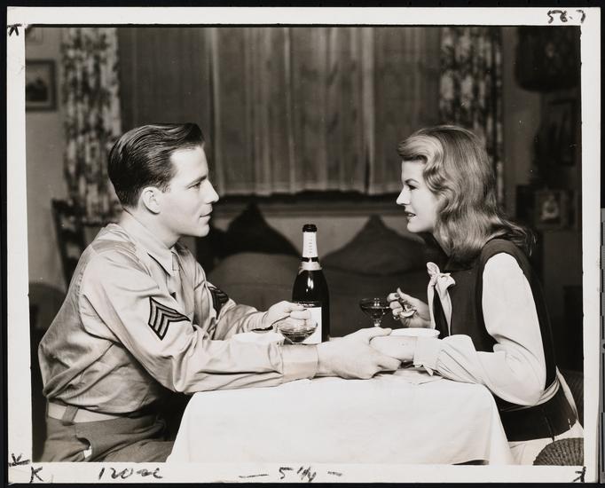 [K. T. Stevens as Sally Middleton and Hugh Marlowe as Bill Page in the touring production of "The Voice of the Turtle".]