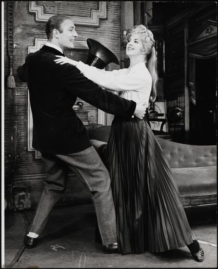 [Brian Aherne as Henry Higgins and Anne Rogers as Eliza Doolittle in the touring production of "My Fair Lady".]