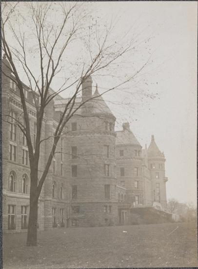 [200 Central Park West. American Museum of Natural History. Exterior, night view.]
