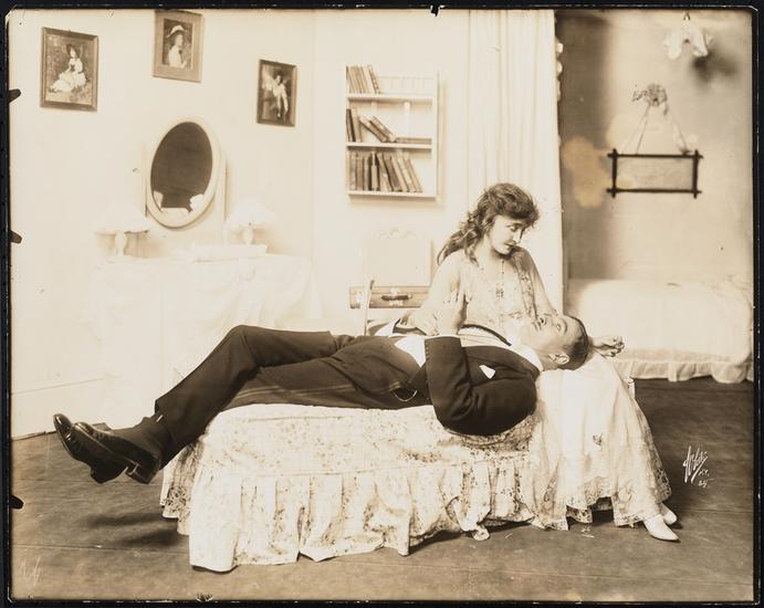 [Grace George as Irene Simpson-Bates and Rockcliffe Fellowes as John Norton in "Eve's Daughter".]