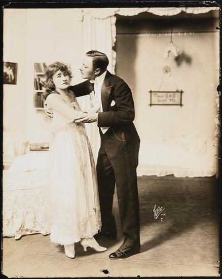 [Grace George as Irene Simpson-Bates and Rockcliffe Fellowes as John Norton in "Eve's Daughter".]